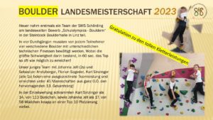 Heuer nahm erstmals ein Team der SMS Schärding am landesweiten Bewerb „Schulolympics – Bouldern“ in der Steinbock Boulderhalle in Linz teil.