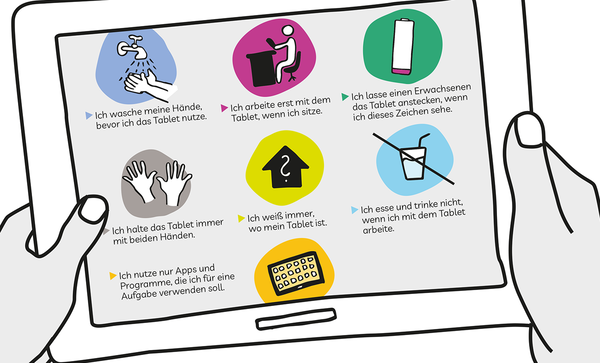 Gleichzeitig zum Aushändigen der Geräte treffen wir mit unseren Schülerinnen und Schülern diese Verhaltensvereinbarungen.