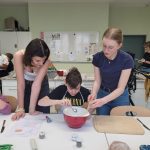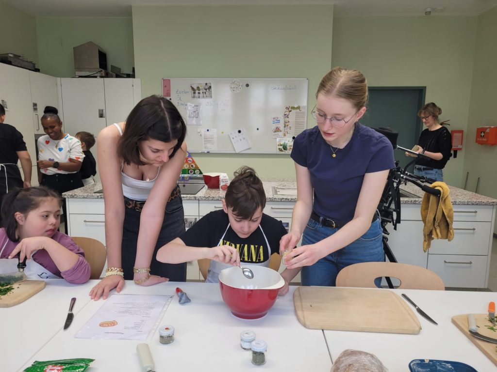 Der Vormittag war in verschiedene Gruppen aufgeteilt: In der Kochgruppe wurde mit viel Einsatz für alle ein gemeinsames Essen zubereitet, damit wir gestärkt durch den Tag gehen konnten. In der Spielgruppe wurde gemeinsam gelacht, ausprobiert und darauf geachtet, dass für jede*n ein passendes Spiel dabei war.