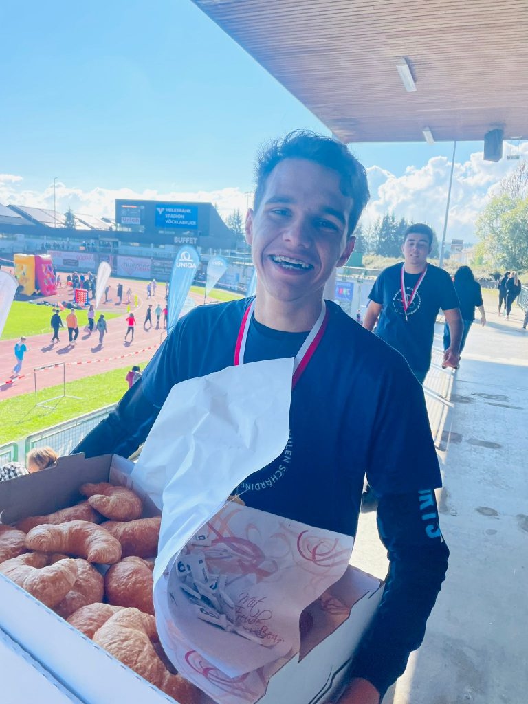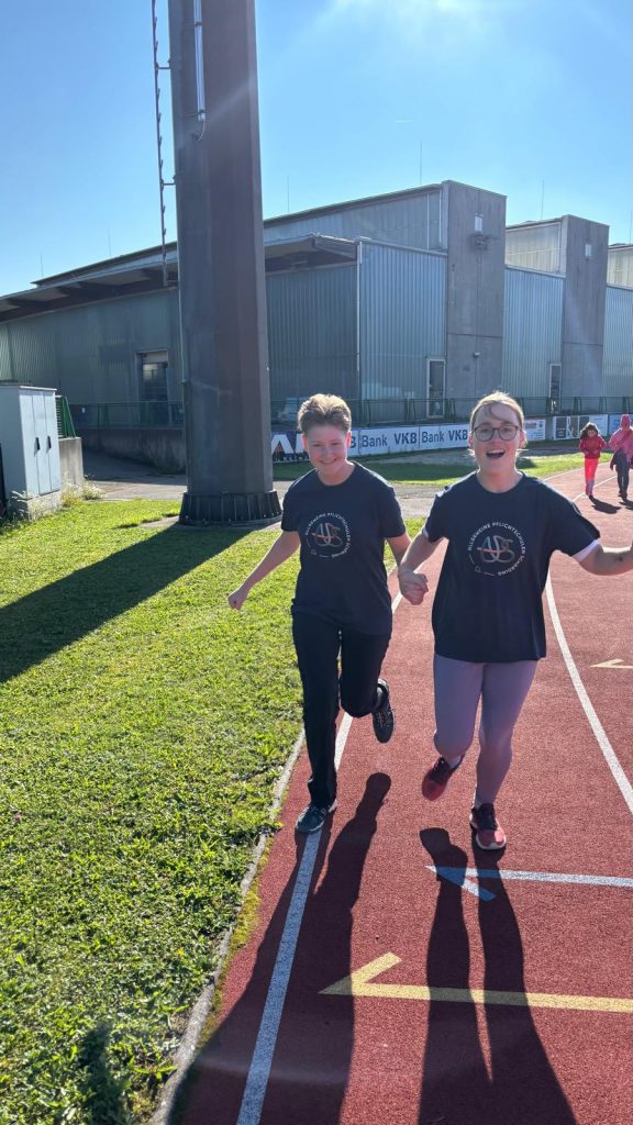 Wir von der Sonderschule Schärding durften bei den Special Olympics für Schulen in Vöcklabruck mitmachen – und es war ein richtig tolles Erlebnis! Die Sonne schien, es gab köstliche Kipferl und warmen Tee vom Veranstalter. Mit einem großen Bus sind wir gemeinsam hingefahren, und sogar eine Klasse der Mittelschule war mit dabei. Wir haben uns lautstark gegenseitig angefeuert und die Stimmung war super. Unsere Schülerinnen und Schüler haben vollen Einsatz gezeigt und sind insgesamt 84 Runden gelaufen – darauf sind wir richtig stolz!
