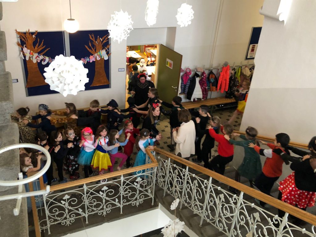 Am Freitag vor den Semesterferien ging es bei uns an der Schule kunterbunt zu. Viele Kinder und Lehrerinnen kamen verkleidet in die Schule. Höhepunkt war eine lustige Polonaise durchs Schulhaus.Der Elternverein versorgte uns an diesem Tag mit leckeren Krapfen. Herzlichen Dank dafür.